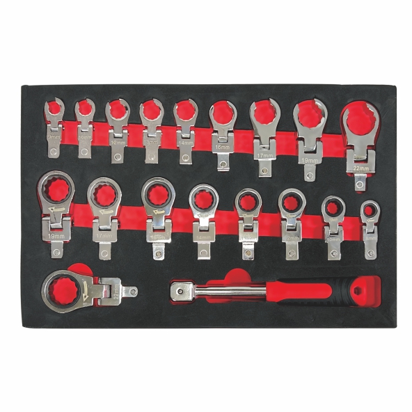 9pcs flexible ratchet heads: 8, 10, 12, 13, 14, 16, 17, 18, 19, 22mm