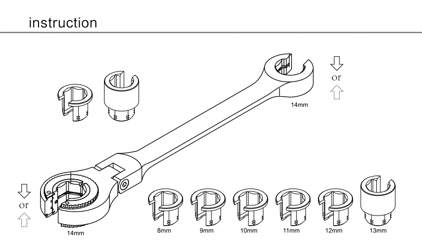 1pc Felxible flare nut ratchet wrench (14mm)